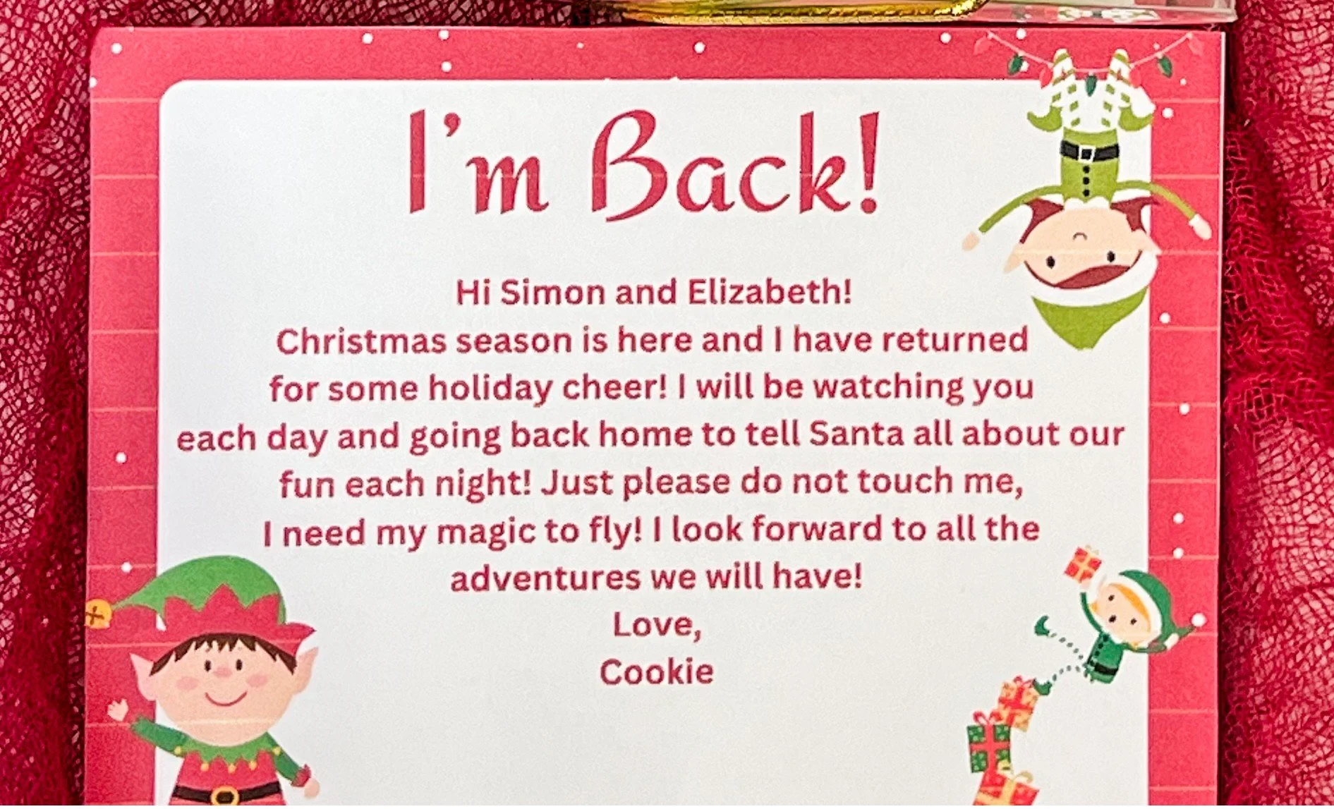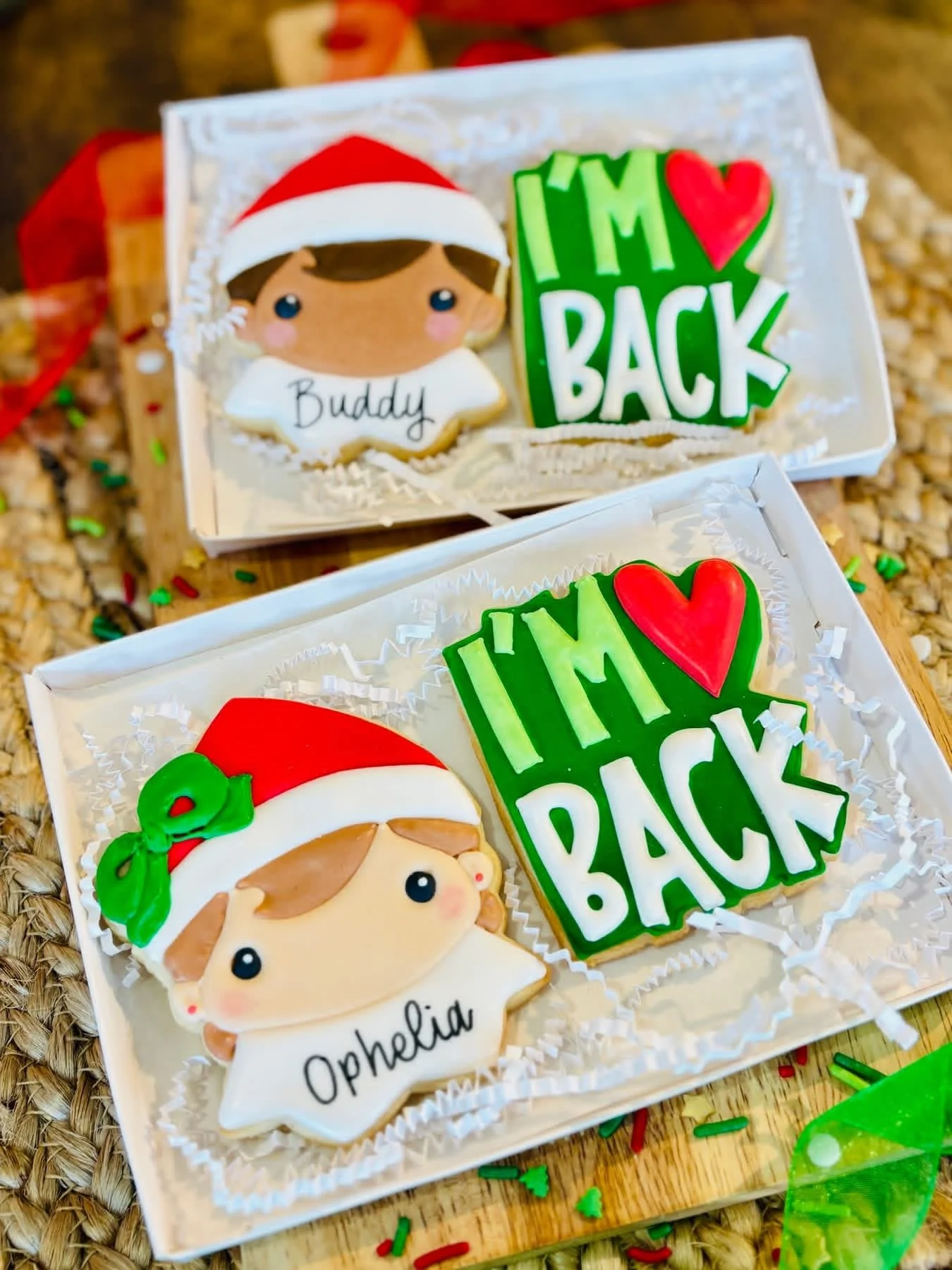 It’s that time of year, for your elf to reappear! Get your family in the holiday spirit by celebrating the return of your elf! Treat your kids to a personalized "I'm Back" cookie or an elf-shaped treat with a special message from Santa or their elf. Also take a look at the fun activities we have for your kiddo and your elf to enjoy!